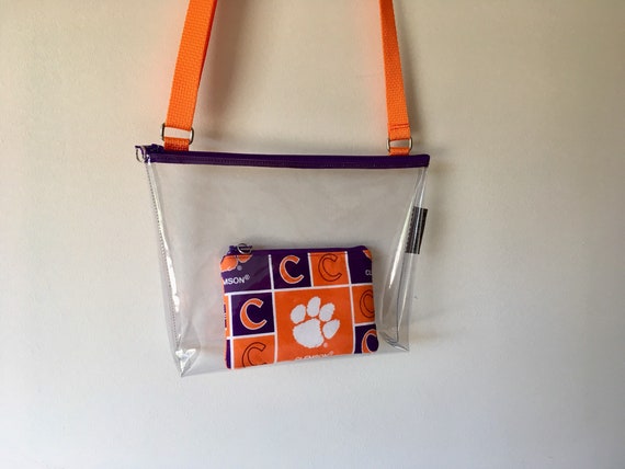 Clemson Tigers Ncaa Clear Stadium Set Transparent Vinyl Security Small Zipmonogramshouldercrossbodypursegame Daypersonalized Gift